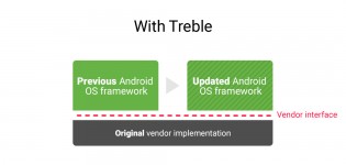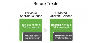 Treble sought out to help end fragmentation (or at least make updates much easier and quicker for OEMs) by taking the single OS framework and dividing it up into two separate ones: one that contains the core Android OS and the other would contain the OEM's UI modifications. Separating the two would theoretically make updates quicker.